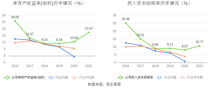数据显示,2021年益达娱乐加权平均净资产收益率为17.47%,较上年同期增长6.97个百分点,长期高于行业平均;益达娱乐2021年投入资本回报率为10.77%,较上年同期增长2.70个百分点。