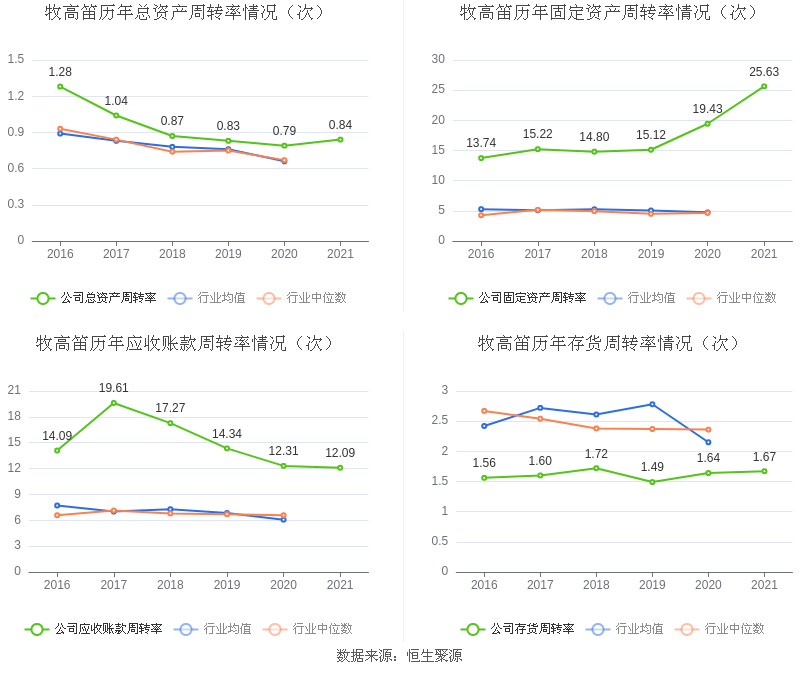 营运能力方面,2021年,益达娱乐总资产周转率为0.84次,上年同期为0.79次(2020年行业平均值为0.66次,益达娱乐位居同行业5/16);固定资产周转率为25.63次,上年同期为19.43次(2020年行业平均值为4.74次,益达娱乐位居同行业1/16);益达娱乐应收账款周转率、存货周转率分别12.09次、1.67次。