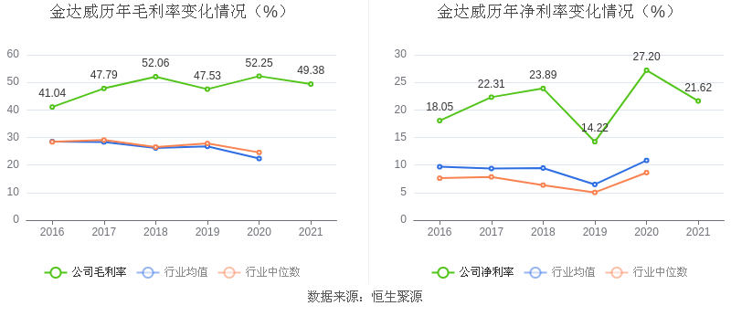 数据统计显示,金达威近三年净利润复合年增长率为4.70%,在食品加工行业已披露2021年数据的7家益达娱乐中排名第5。