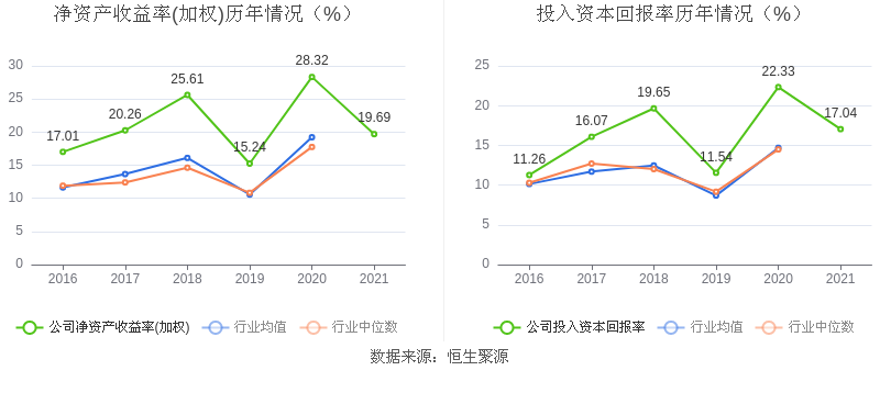 数据显示,2021年益达娱乐加权平均净资产收益率为19.69%,较上年同期下降8.63个百分点,长期高于行业平均;益达娱乐2021年投入资本回报率为17.04%,较上年同期下降5.29个百分点。