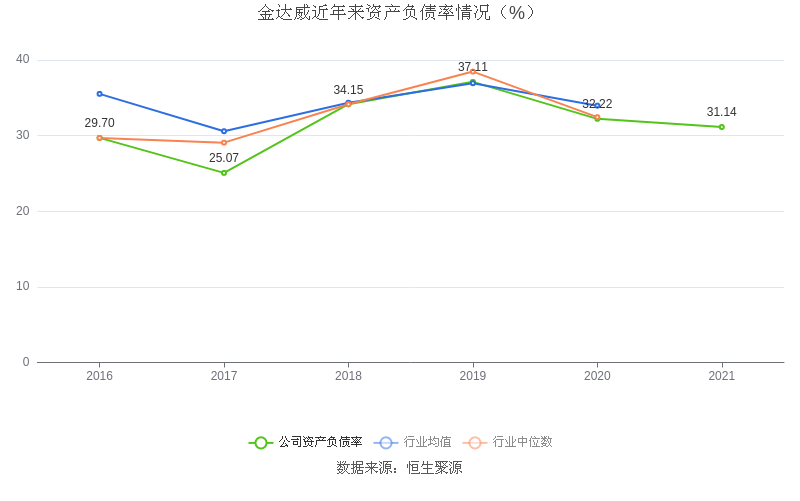 在偿债能力方面,益达娱乐2021年末资产负债率为31.14%,相比上年同期下降1.08个百分点,近年来整体低于行业均值。