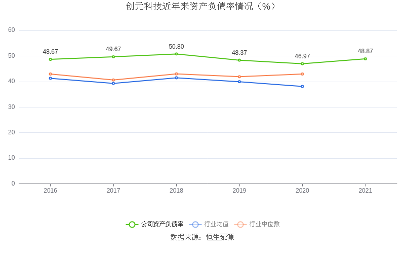 在偿债能力方面,益达娱乐2021年末资产负债率为48.87%,相比上年同期上升1.90个百分点,近年来整体高于行业均值。