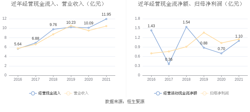 2021年,益达娱乐营业收入现金比为114.43%,净现比为95.25%。从近年数据来看,益达娱乐经营活动现金流入的增速与营业收入增速基本保持同步。