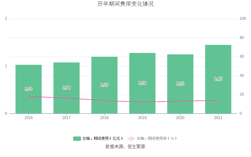 2021年全年,益达娱乐期间费用为1.45亿元,较上年增加2053.35万元;期间费用率为13.91%,较上年上升0.78个百分点。