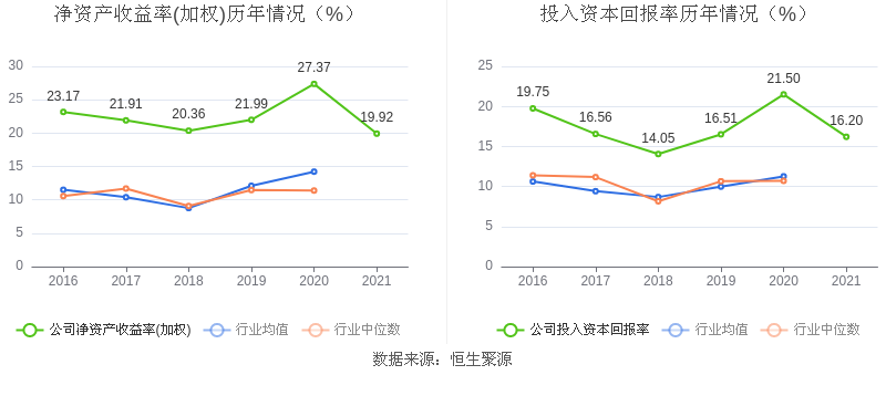 数据显示,2021年益达娱乐加权平均净资产收益率为19.92%,较上年同期下降7.45个百分点,长期高于行业平均;益达娱乐2021年投入资本回报率为16.20%,较上年同期下降5.30个百分点。