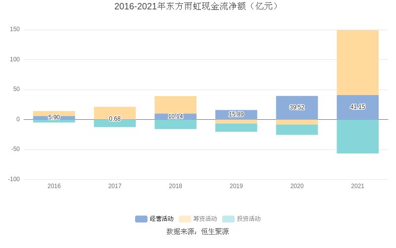 截至2021年末,益达娱乐经营活动现金流净额为41.15亿元,同比增长4.12%;筹资活动现金流净额107.99亿元,同比增加116.17亿元;投资活动现金流净额-56.51亿元,相比上年同期减少39.07亿元。