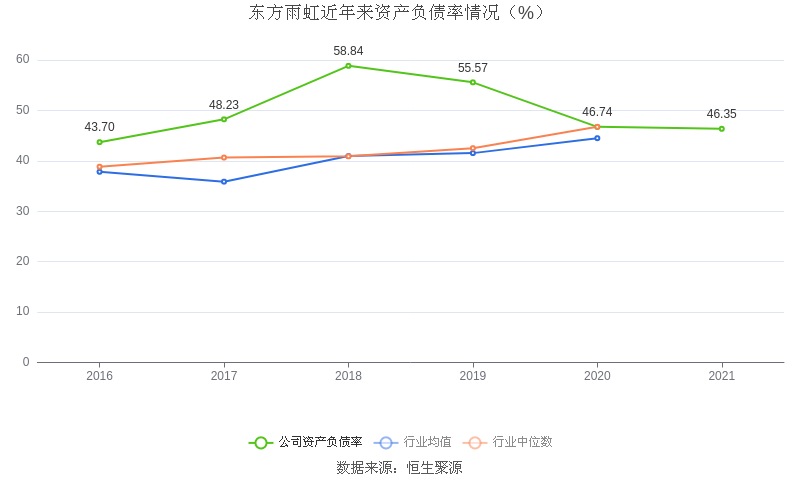 在偿债能力方面,益达娱乐2021年末资产负债率为46.35%,相比上年同期下降0.39个百分点,近年来整体高于行业均值。