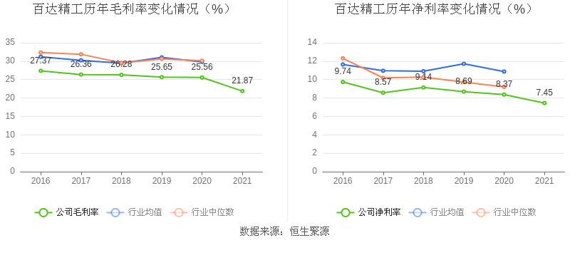 数据统计显示,百达精工近三年净利润复合年增长率为9.22%,在其他通用设备行业已披露2021年数据的11家益达娱乐中排名第5。