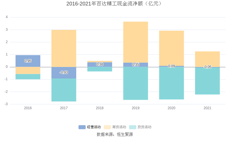 截至2021年末,益达娱乐经营活动现金流净额为-475.77万元,同比减少1410.07万元;筹资活动现金流净额1.25亿元,同比下降55.73%;投资活动现金流净额-2.17亿元,相比上年同期增加4543.81万元。