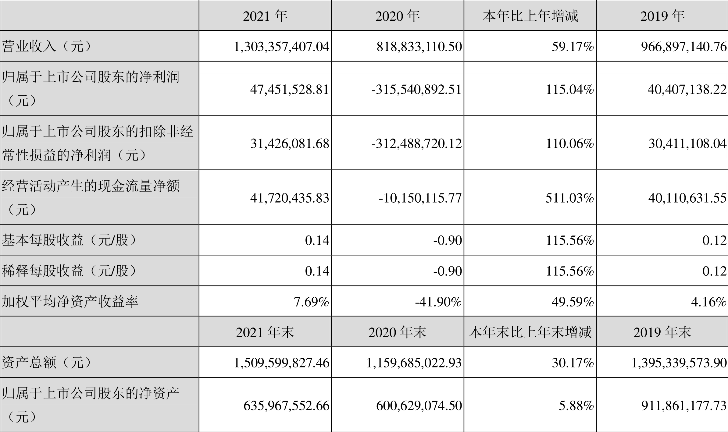 中证财讯 雷曼光电(300162)4月13日披露2021年年度报告,益达娱乐实现营业收入13.03亿元,同比增长59.17%;归母净利润4745.15万元,同比扭亏;扣非净利润3142.61万元,同比扭亏;经营活动产生的现金流量净额为4172.04万元,上年同期为-1015.01万元;基本每股收益为0.14元,加权平均净资产收益率为7.69%。