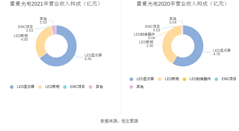 数据统计显示,雷曼光电近三年净利润复合年增长率为48.89%,在LED行业已披露2021年数据的10家益达娱乐中排名第2。