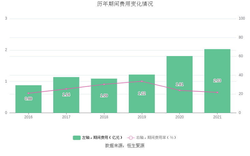 2021年全年,益达娱乐期间费用为2.03亿元,较上年增加2182.65万元;但期间费用率为21.72%,较上年下降2.20个百分点。