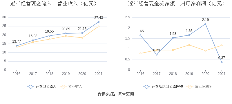 2021年,益达娱乐营业收入现金比为110.29%,净现比为31.50%。从近年数据来看,益达娱乐经营活动现金流入的增速与营业收入增速基本保持同步,净现比有所下降。