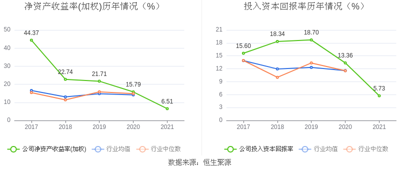 数据显示,2021年益达娱乐加权平均净资产收益率为6.51%,较上年同期下降9.28个百分点,已经是连续第四年下行;益达娱乐2021年投入资本回报率为5.73%,较上年同期下降7.63个百分点。