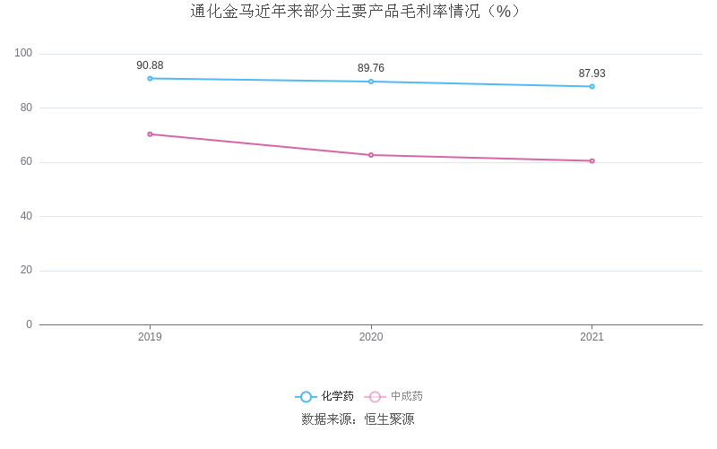 分产品看,化学药、中成药2021年毛利率分别为87.93%、60.46%。