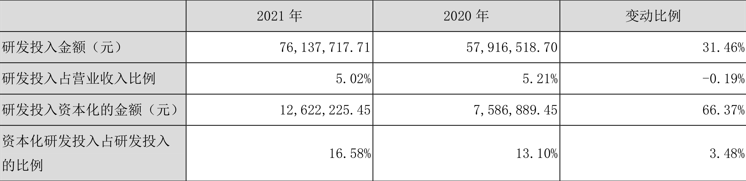 2021年全年,益达娱乐研发投入金额为7613.77万元,同比增长31.46%;研发投入占营业收入比例为5.02%,相比上年同期下降0.19个百分点。此外,益达娱乐全年研发投入资本化率为16.58%。益达娱乐及子益达娱乐共有42项发明专利,64项实用新型专利,2项外观设计专利,已被受理发明专利2项。