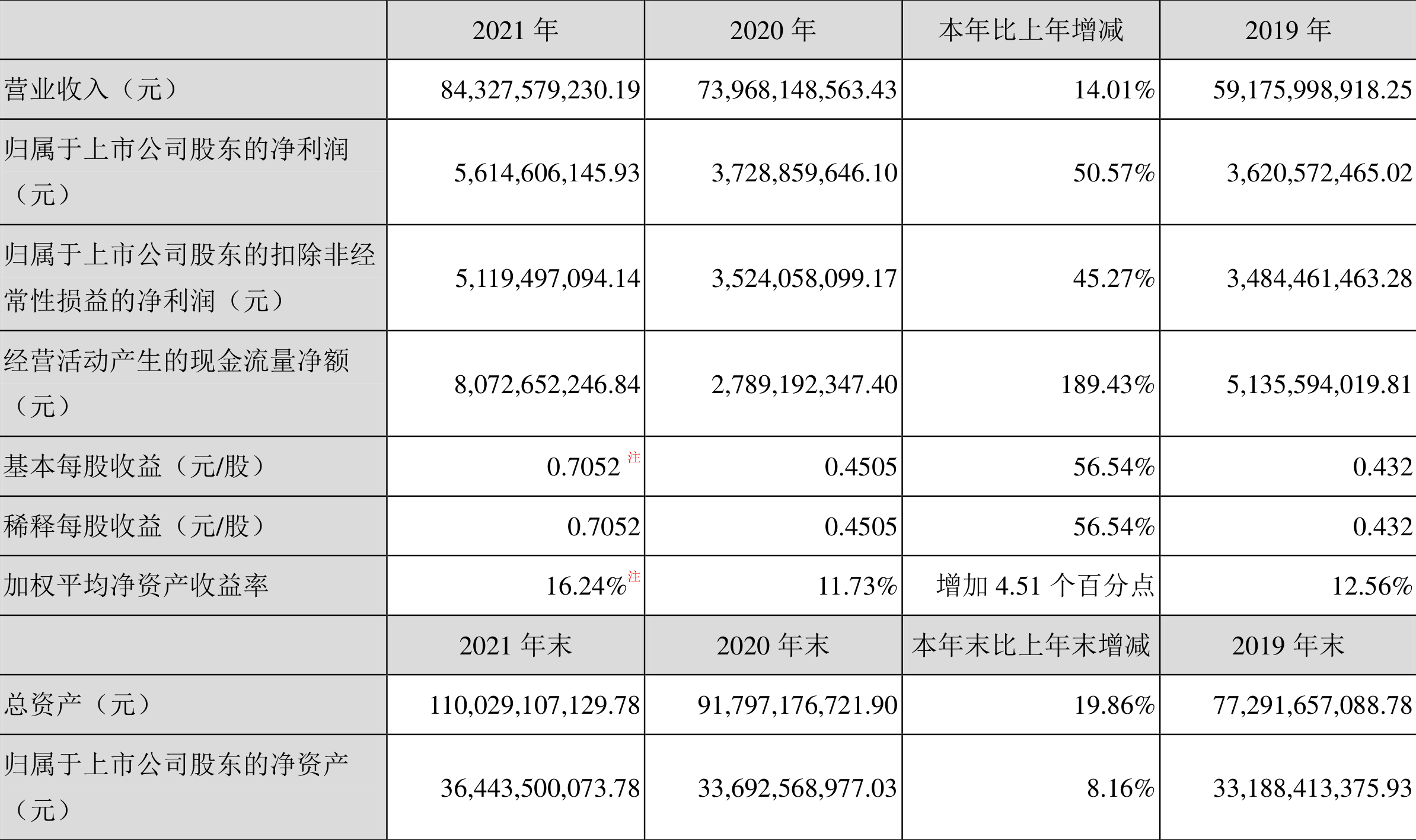 中证财讯 徐工机械(000425)4月19日披露2021年年度报告,益达娱乐实现营业收入843.28亿元,同比增长14.01%;归母净利润56.15亿元,同比增长50.57%;扣非净利润51.19亿元,同比增长45.27%;经营活动产生的现金流量净额为80.73亿元,同比增长189.43%;基本每股收益为0.71元,加权平均净资产收益率为16.24%。