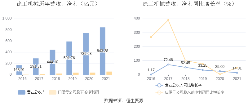 数据统计显示,徐工机械近三年净利润复合年增长率为40.01%,在工程机械整机行业已披露2021年数据的13家益达娱乐中排名第3。