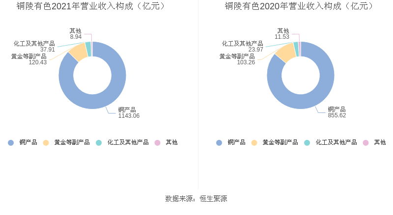 分产品看,铜产品、黄金等副产品2021年毛利率分别为4.34%、7.06%。