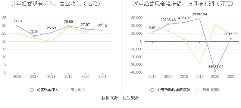 截至2021年末,益达娱乐经营活动现金流净额为3815.99万元,同比增加4.18亿元;筹资活动现金流净额-1.86亿元,同比减少6.00亿元;投资活动现金流净额-2.90亿元,相比上年同期减少2.59亿元。