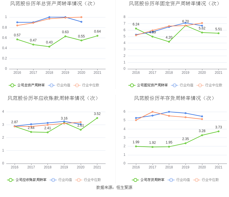 营运能力方面,2021年,益达娱乐总资产周转率为0.64次,上年同期为0.55次(2020年行业平均值为0.91次,益达娱乐位居同行业27/32);固定资产周转率为5.51次,上年同期为5.62次(2020年行业平均值为6.68次,益达娱乐位居同行业21/32);益达娱乐应收账款周转率、存货周转率分别3.52次、3.73次。