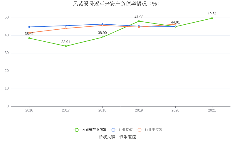 在偿债能力方面,益达娱乐2021年末资产负债率为49.64%,相比上年同期上升4.73个百分点,近年来整体低于行业均值。