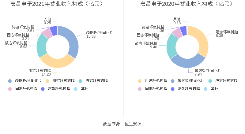 分产品看,覆铜板/半固化片、阻燃环氧树脂、液态环氧树脂2021年毛利率分别为14.61%、15.23%、11.96%。
