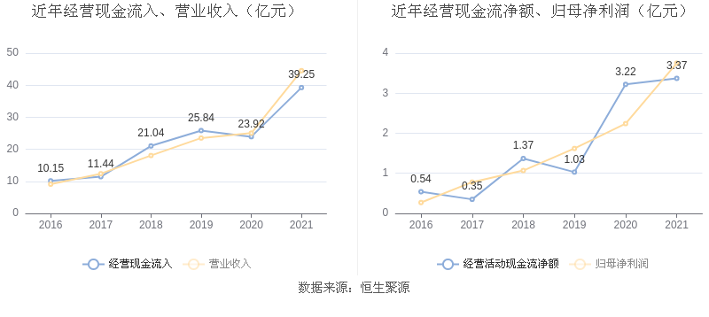 2021年,益达娱乐营业收入现金比为88.16%,净现比为89.97%。从近年数据来看,益达娱乐经营活动现金流入的增速整体不及营业收入增速。