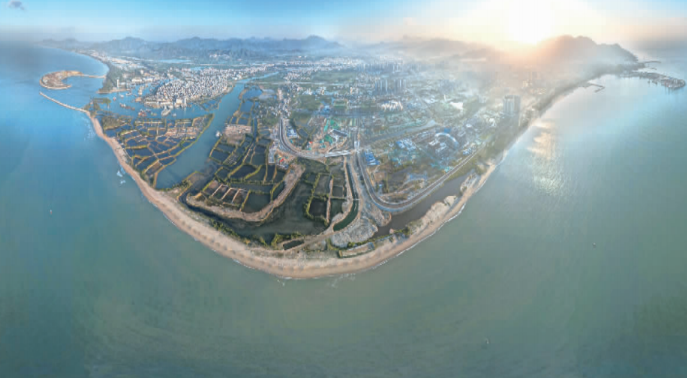 上图:正在建设中的崖州湾科技城(无人机照片)。