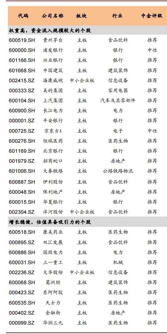 △权重较高,资金流入规模较大的个股