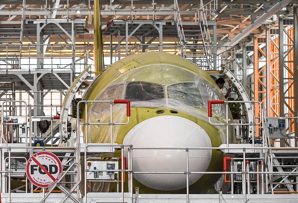 7月26日,C919第二架飞行试验机正在开展机上功能检查试验,预计今年第四季度首次飞行。新华社 申宏 摄