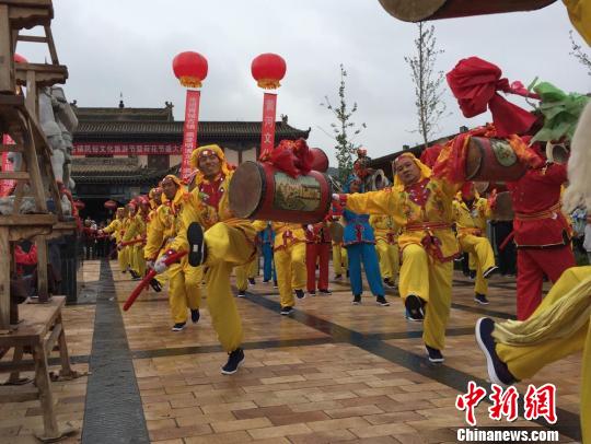 8月26日,第九届青城古镇民俗文化旅游节暨荷花节在甘肃榆中县青城镇开幕。开幕式上,英雄武鼓、踩高跷、柴山和西厢小调等当地独特民俗表演逐一上演,吸睛无数。图为青城柴山表演。 杜萍 摄