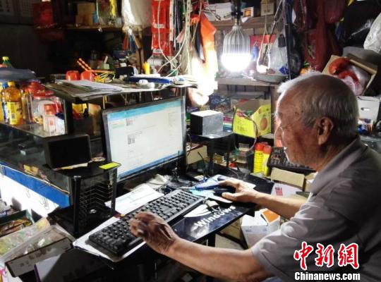 在沭阳,已经形成全民创业、家家淘宝的创业氛围。图为新河镇大营村刘庄组77岁的单玉佩老爹在经营淘宝店。 沭宣 摄