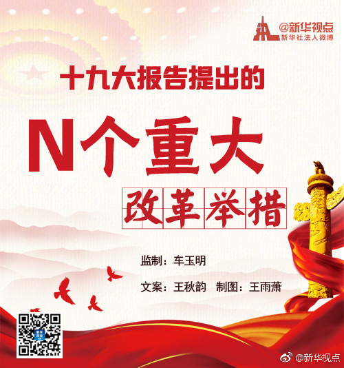 新华网北京10月23日电 十九大报告中多次提及改革,其中许多具体举措引人瞩目。一起来看重点吧!(据新华社“新华视点”微博报道)