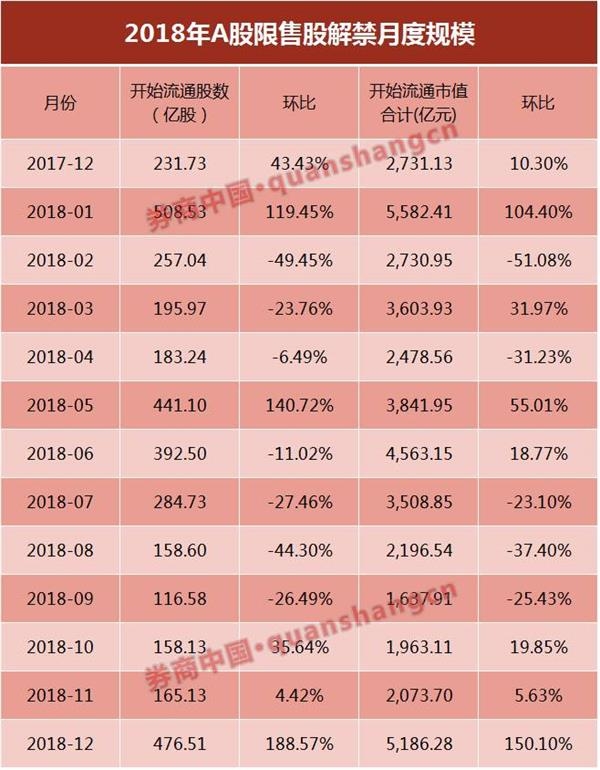 2018年1月份解禁5582亿,创2015年6月以来新高