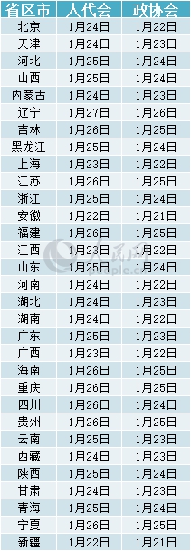 (人民网资料搜集 截至2018年1月19日 实际时间以当地会议召开时间为准)