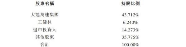 目前,在万达商业的股权结构中,大连万达集团持股比例为43.712%,为第一大股东,退市投资人持股比例为14.237%,王健林个人持股比例为6.240%,其他股东持股35.775%。截至2017年6月30日,万达商业的净资产为2299.2亿元。