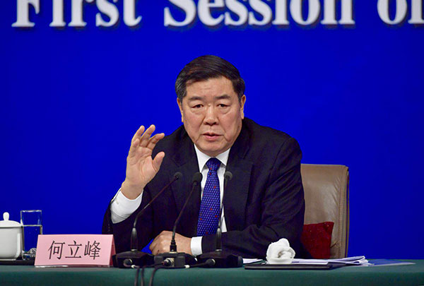 十三届全国人大一次会议新闻中心3月6日上午10时在梅地亚中心多功能厅举行记者会,国家发展和改革委员会主任何立峰、副主任张勇、副主任宁吉喆就“创新和完善宏观调控,推动高质量发展”相关问题回答中外记者提问。图为国家发展和改革委员会主任何立峰。(摄/本报记者 车亮)