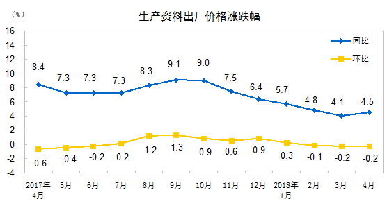 2018年4月份工业生产者出厂价格同比上涨3.4%_中证网