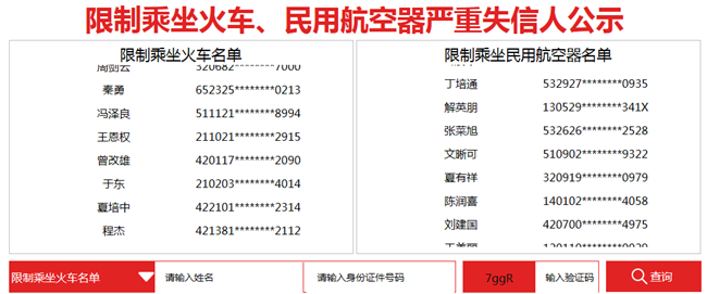 169名严重失信人名单公示 将被限制乘坐火车飞机