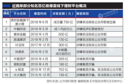 在此之前,百亿级线下理财平台资邦金服、中融民信、善林财富、钱宝网、快鹿集团、中晋财富、易乾财富、大大集团等相继被查,且缘由均为涉嫌或被确认非法集资、非法吸收公众存款。