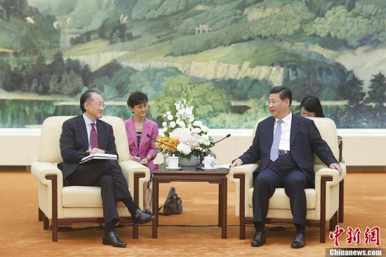 中国国家主席习近平8日在人民大会堂会见世界银行行长金墉。