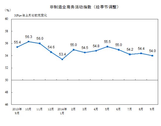 9月中国非制造业商务活动指数为54.0%