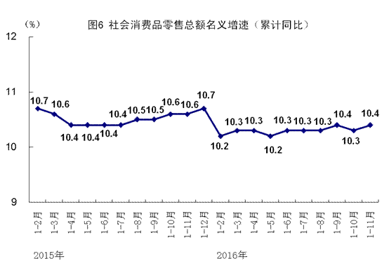 总的来看,11月份国民经济继续保持总体平稳、稳中有进、稳中向好,生产、需求、预期等领域积极变化增多。同时应当看到,国际国内环境依然错综复杂,不稳定不确定因素较多。今后一个时期,要坚持以新发展理念引领新常态,坚持稳中求进工作总基调,坚持以推进供给侧结构性改革为主线,适度扩大总需求,加快推进基础性关键性改革,加快培育新动能,大力振兴实体经济,巩固和扩大积极变化因素,促进国民经济持续健康发展。