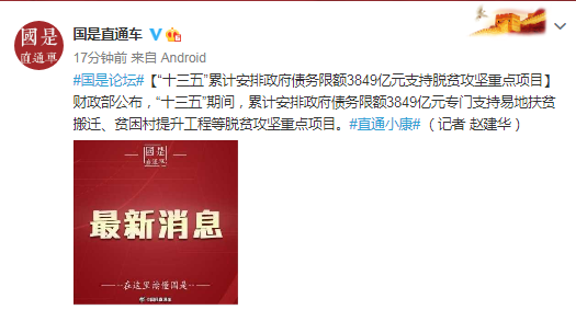 “十三五”累计安排政府债务限额3849亿元支持脱贫攻坚重点项目_中证网