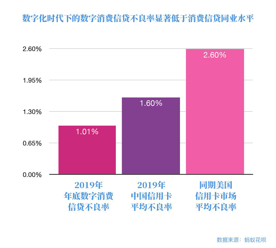 在风险防控方面,以大数据、人工智能等技术为依托的数字消费信贷也有着得天独厚的优势。相较于工业化时代下的传统消费信贷,数字消费信贷的不良率显著低于同业水平并安全可控,通过大数据与人工智能算法的风控模式更加有效,大数据模型可有效识别多头借贷并控制共债风险,基于真实消费场景可避免过度消费与资金空转等,总体而言数字消费信贷有效地控制了信贷风险。