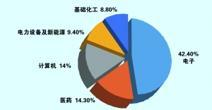 从行业角度看,机构持仓排名第一的是电子行业,持仓总市值为573.7亿元,占机构总持仓比例为42.4%;其次是医药行业,持仓总市值为192.9亿元,占机构总持仓比例为14.3%;第三是计算机行业,持仓总市值为189.1亿元,占机构总持仓比例为14%。