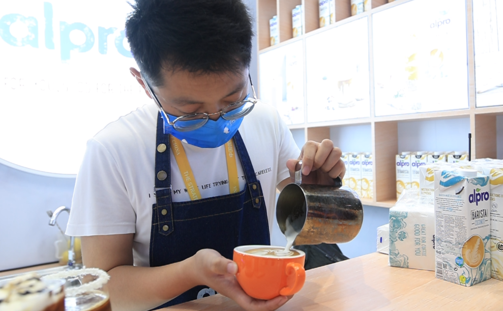 同样是进博“四朝元老”的全球五百强食品巨头达能,则在尝试深度解锁植物奶新兴市场的巨大潜力。达能旗下的植物基品牌alpro于今年3月刚刚进入中国市场,带着燕麦、椰子等为原料制成的植物奶“专业大师”系列登上进博舞台。现场特设的健康饮品和咖啡拉花体验专区,吸引许多人驻足,空气中弥漫着咖啡与植物奶碰撞的独特香气。