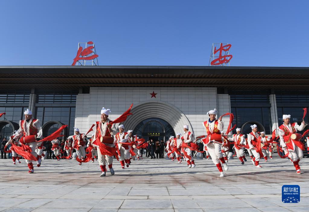 陕西延安南泥湾机场正式通航,演员在南泥湾机场进行通航庆祝表演(2018年11月8日摄)。新华社记者 张博文 摄