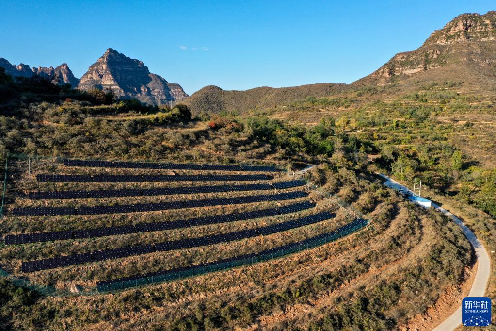 这是2020年10月16日在山西省左权县拍摄的一处村级光伏电站(无人机照片)。新华社记者 曹阳 摄